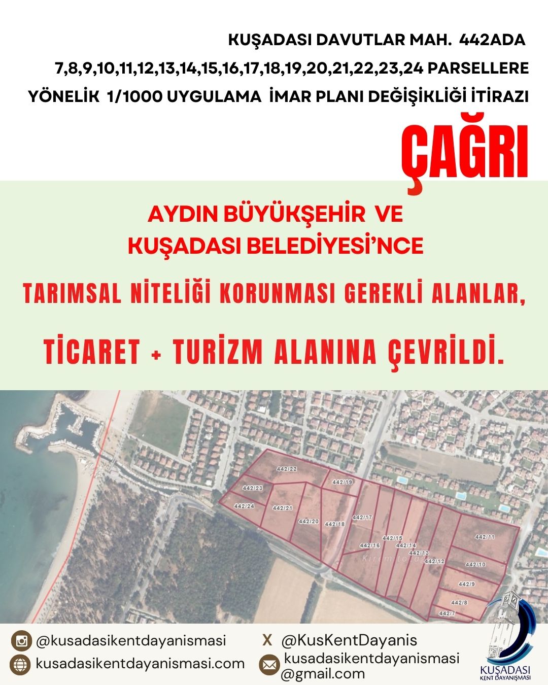 442 Ada 7–24 Parseller İmar Planı Değişikliğine İtiraz ve Kamuoyu Çağrısı Kuşadası İlçesi, Davutlar Mahallesi