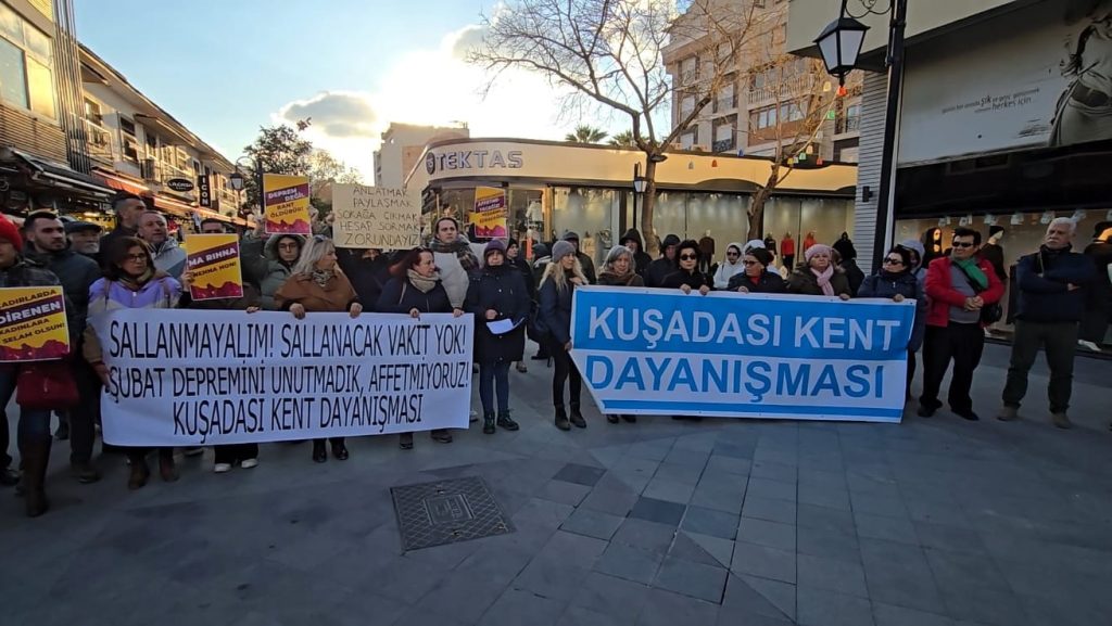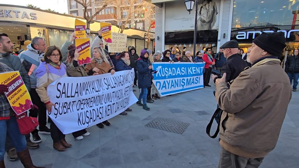 Kuşadası, 6 Şubat 2025 – Kuşadası Kent Dayanışması, Kahramanmaraş ve Hatay’da iki yıl önce yaşanan depremin yıl dönümünde Kaya Şavkay Meydanı’nda bir basın açıklaması düzenledi. Soğuk havaya rağmen Kuşadası halkının katılımıyla gerçekleşen açıklamada, depremde hayatını kaybedenler anıldı ve Ege Denizi’nde yaşanan deprem fırtınasına karşı hazırlıklı olunması çağrısında bulunuldu.